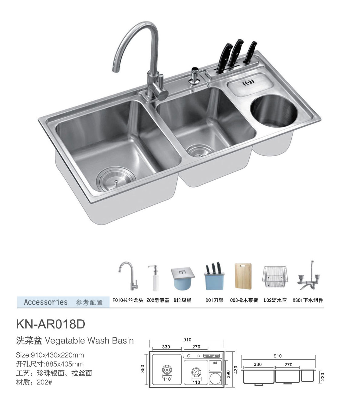 ● 表面精工拉丝工艺处理,抗锈耐划;● 贴心溢水小口设计,有效防止水流溢出;● 三防下水器,健康安全有保障;